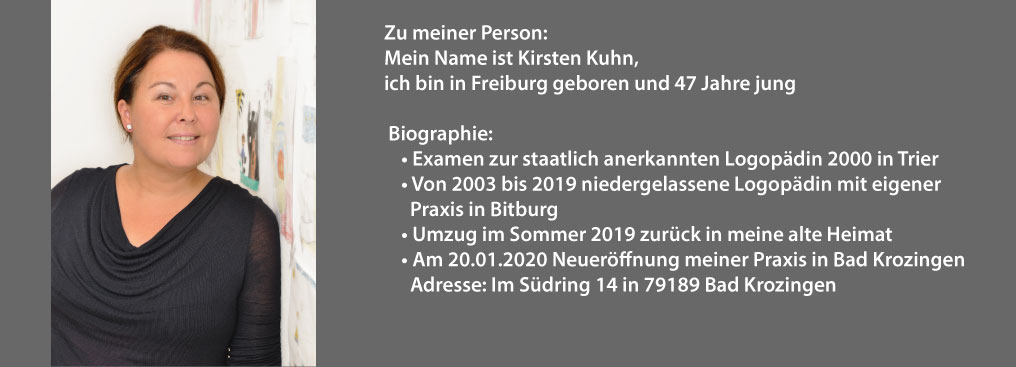 Gehen Sie den ersten Schritt und rufen Sie in meiner logopädischen Praxis an, oder kontaktieren Sie mich unter info@sprachzeit-kuhn.de. Ich begleite Sie oder Ihr Kind in meinr logopädischen Praxis, oder auf Wunsch auch bei Ihnen zu Hause.